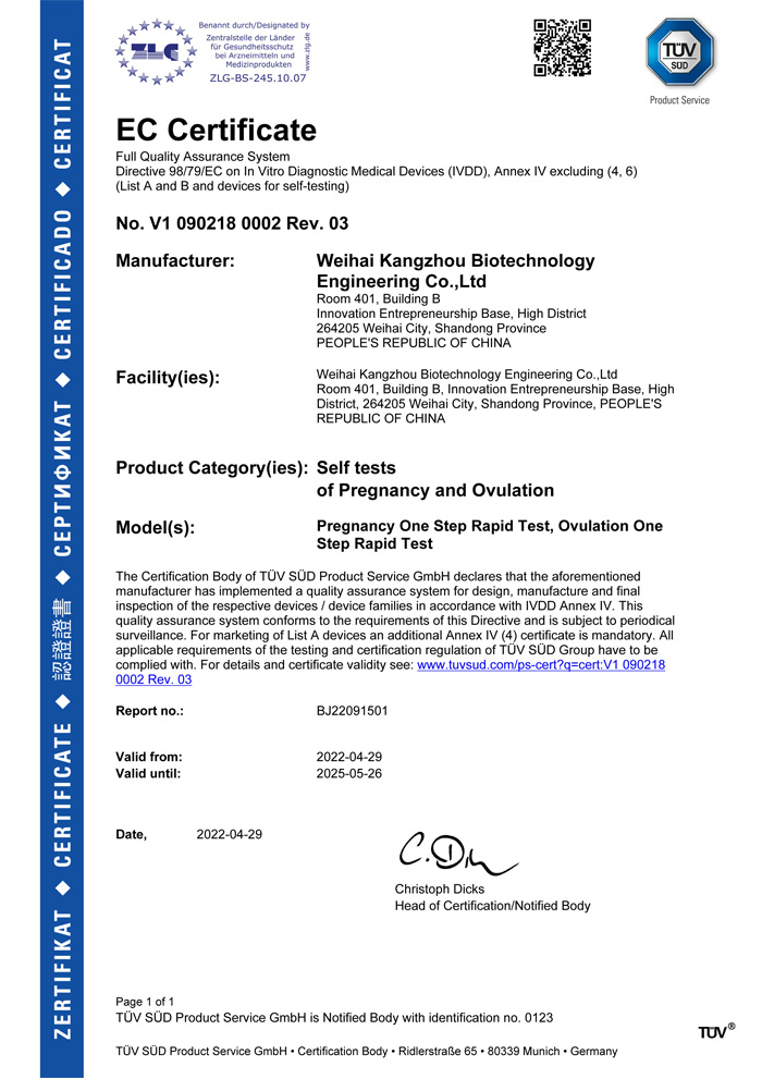 ? ? ?威??抵萆锕こ逃邢薰境闪⒂?013年,公司坐落于風景秀麗的海濱小城——威海市??抵萆锸羌邪l、生產和銷售于一體的生物科技公司,與威海哈爾濱工業大學合作研發團隊,擁有先進的科研基地及生產基地。主要從事快速診斷檢測產品的研發、生產、銷售。產品涵蓋:生育檢測、藥物濫用檢測、農藥殘留檢測以及其他臨床診斷檢測等。公司自主研發生產得早早孕試紙,排卵檢測試紙,毒品檢測及疾病檢測等醫用產品,經過歐盟認證,產品質量穩定,值得信賴。